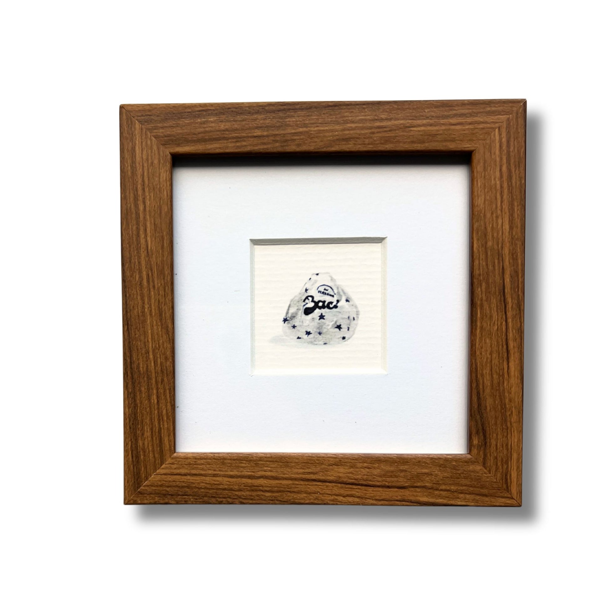 This 4 × 4 cm mini print features my illustration of a Baci — the iconic Italian chocolate kiss, wrapped in silver and filled with hazelnut crunch and creamy nostalgia. You can easily spot them in the wild, temptingly stacked on the counters of Italian bars or Tabbachi, whispering sweet nothings with every love note tucked inside. A playful gift or a tiny tribute to after-school treats, cheeky bribes, and timeless Italian sweetness.