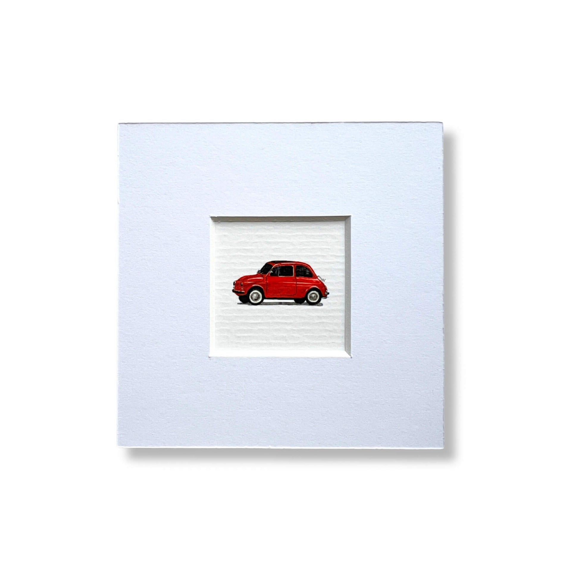 This 4 × 4 cm mini print features my illustration of a classic red Fiat 500 — the tiny Italian icon that has zipped through generations, cobblestone alleys, and summer memories. You can easily spot them in the wild, cheerfully parked outside cafés or buzzing up winding hillsides, carrying everything from groceries to Christmas trees with effortless charm. A playful gift or a petite tribute to road trips, seaside towns, and the unmistakable joy of Italian everyday life.